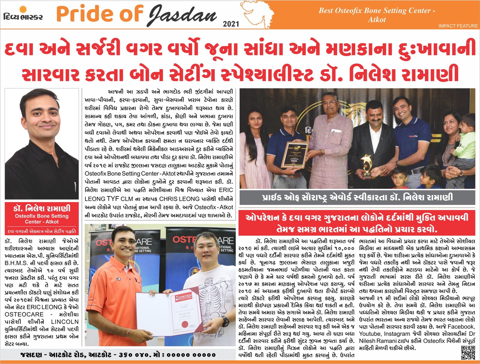 I have an amazing experience with Osteofix bone setting centre ahemdabad. Dr ramani giving their best to all patients. I am thankful to them for giving relief to my body pain.